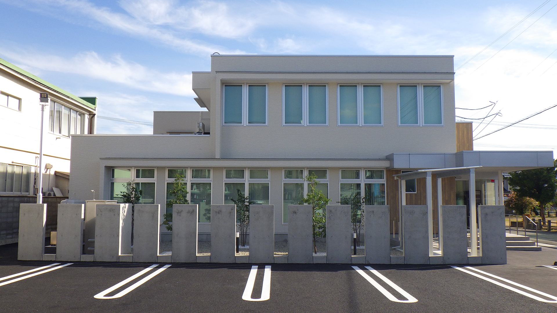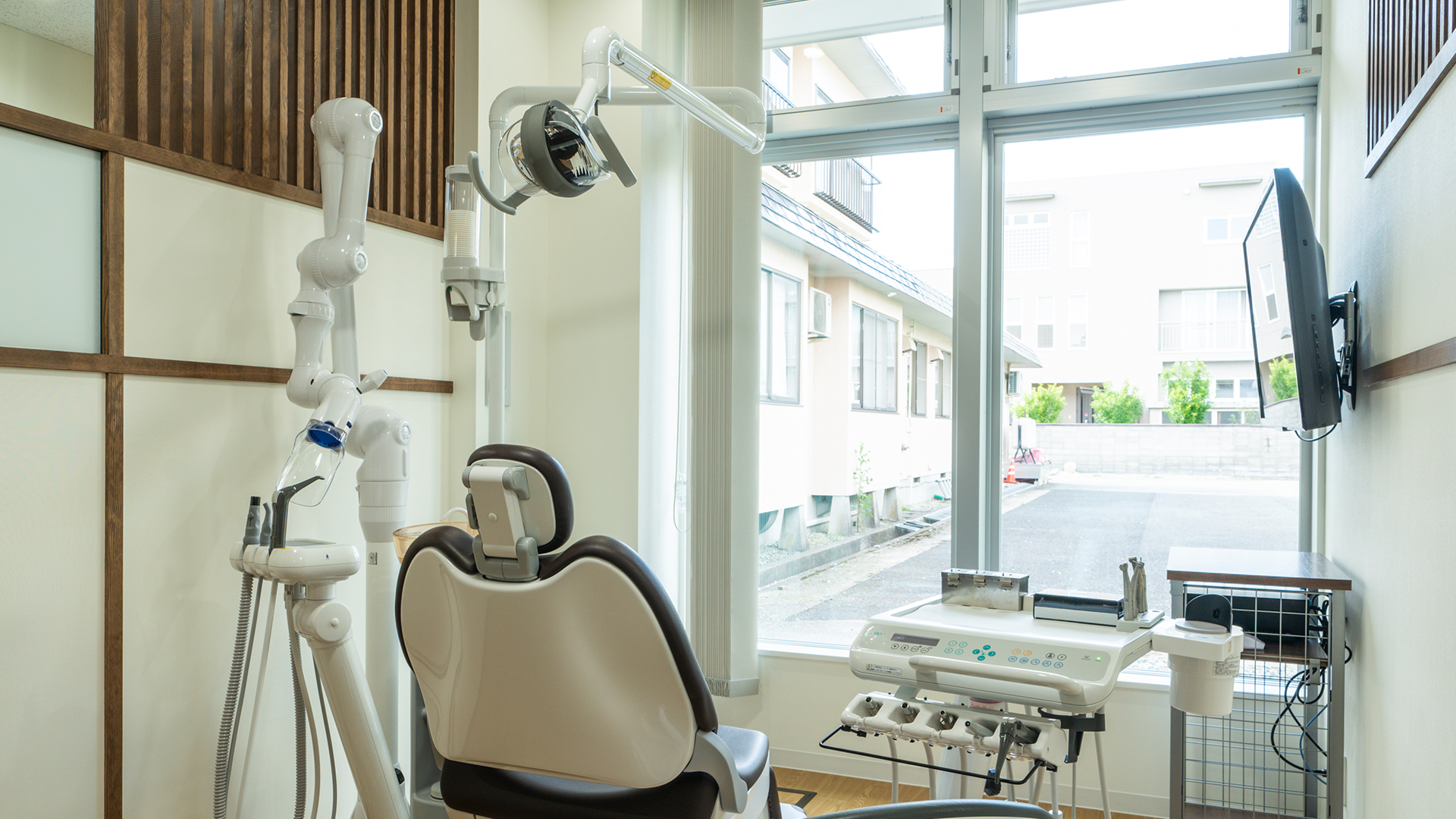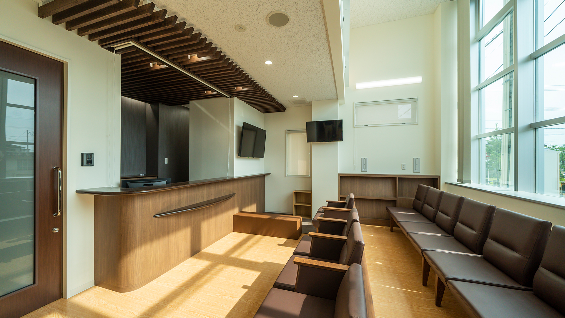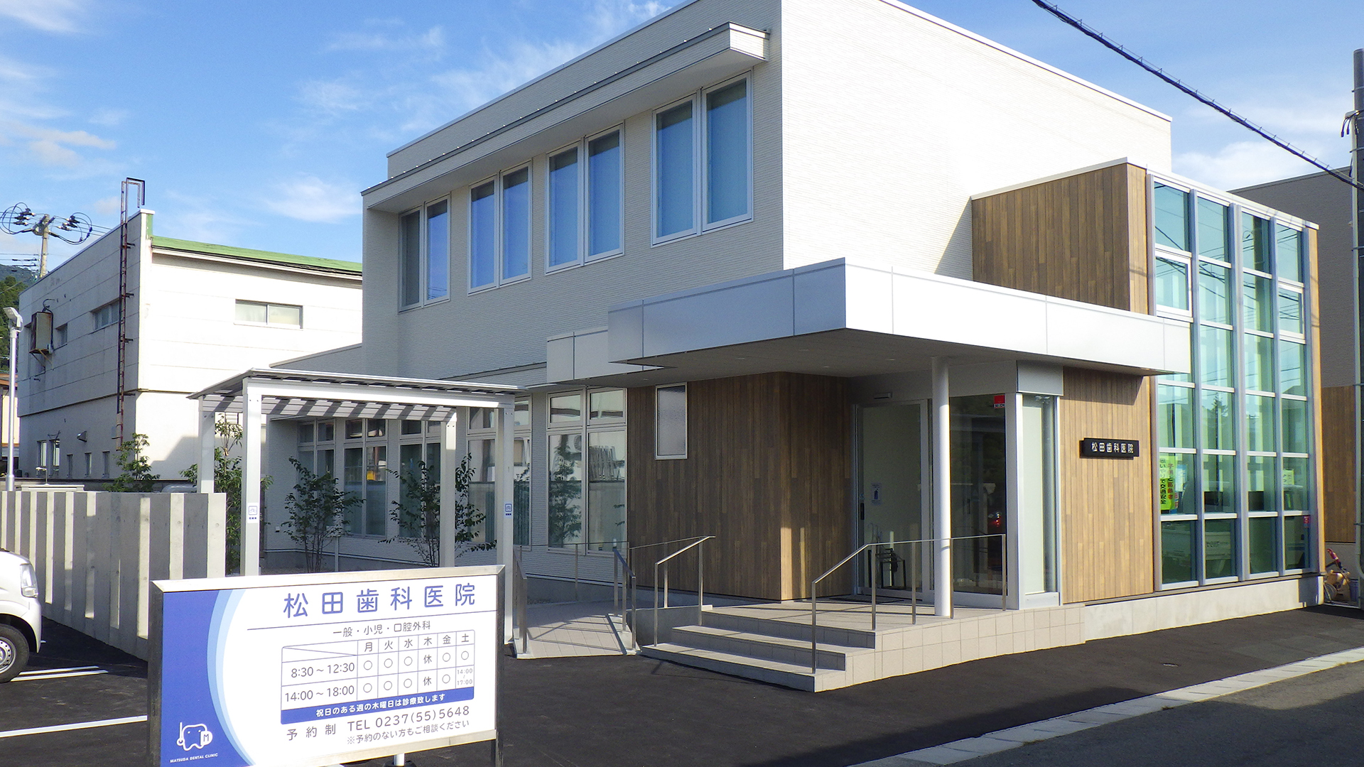医療施設 松田歯科医院/村山市 床面積:575㎡ 竣工年月:令和元年9月 設計事務所:エフティ共立建築事務所 住宅街に建つ スタイリッシュな デンタルクリニック 地域に根ざし、村山市民の歯科医院としてご活躍されていた松田歯科医院様。スタイリッシュになって新たにオープン。 道路に面する大開口のカーテンウォールは路行く人が目を止め、木材柄の外壁はモダンな中に街との調和が感じられます。内装も清潔なホワイトで統一し、床暖房や空調などの機能もしっかりと備え、最新の医療設備でお客様をお迎えします。